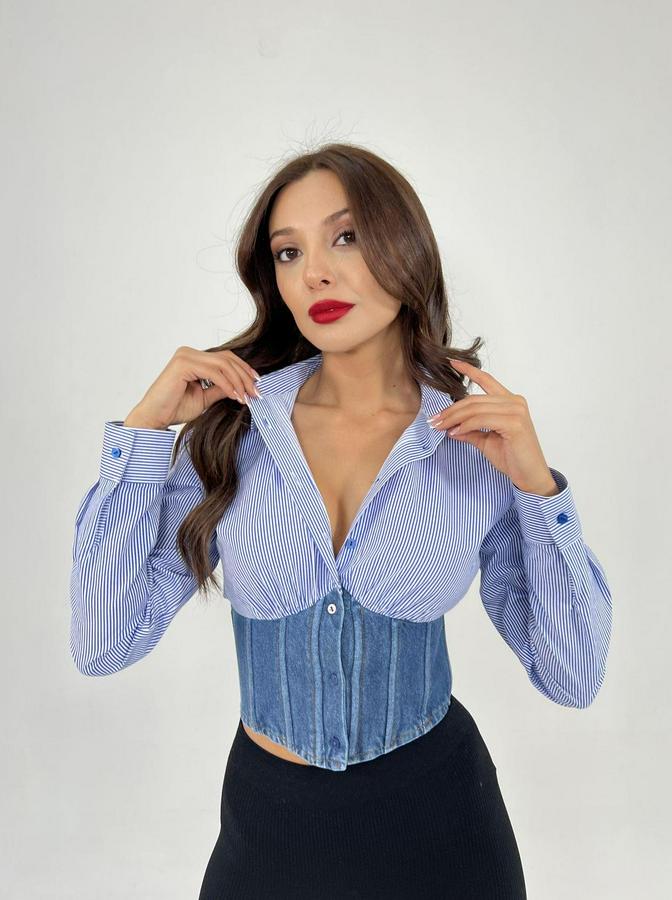 6963 GÖMLEK-MAVİ BEYAZ ÇİZGİLİ