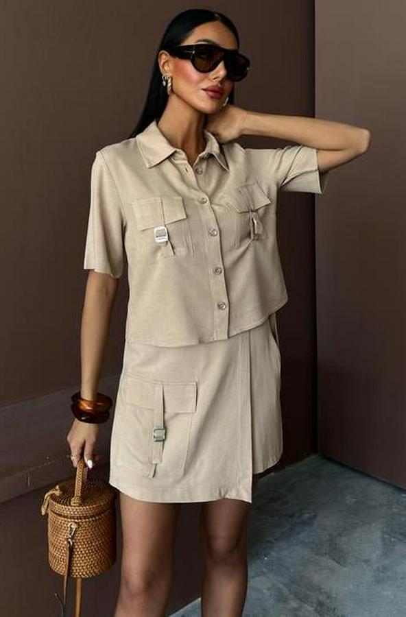Gömlek Şort Etek Viscon Keten Takım 10162