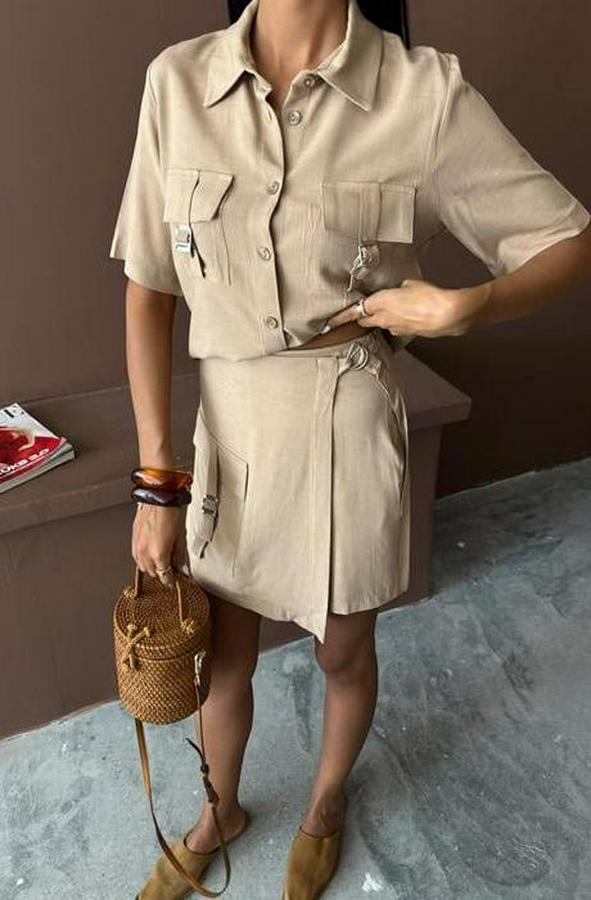 AnasayfaTüm ÜrünlerÜst GiyimBluz & TunikBluzGömlek Şort Etek Viscon Keten Takım 10162