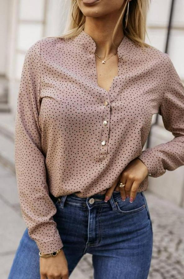 AnasayfaTüm ÜrünlerÜst GiyimBluz & TunikBluzHakim Yaka Metal Düğmeli Moskrep Kumaş Bluz