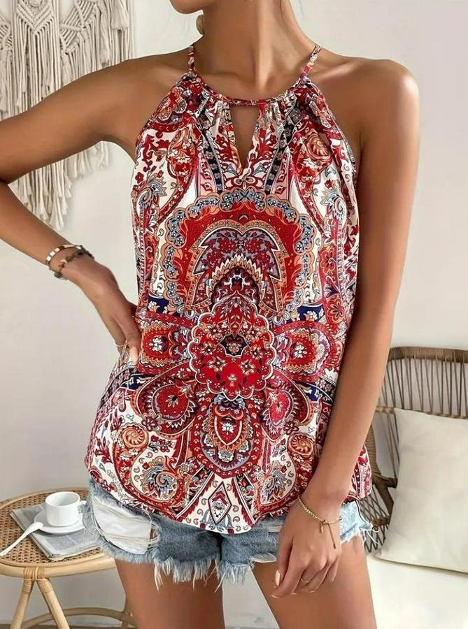 Halter Kollu Damla Detaylı Desenli Süprem Bluz