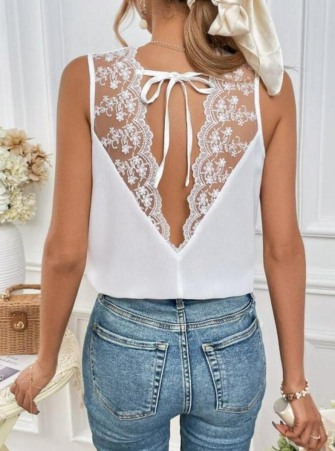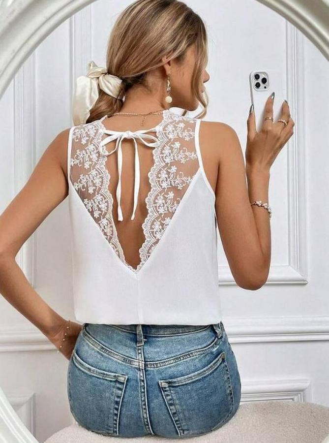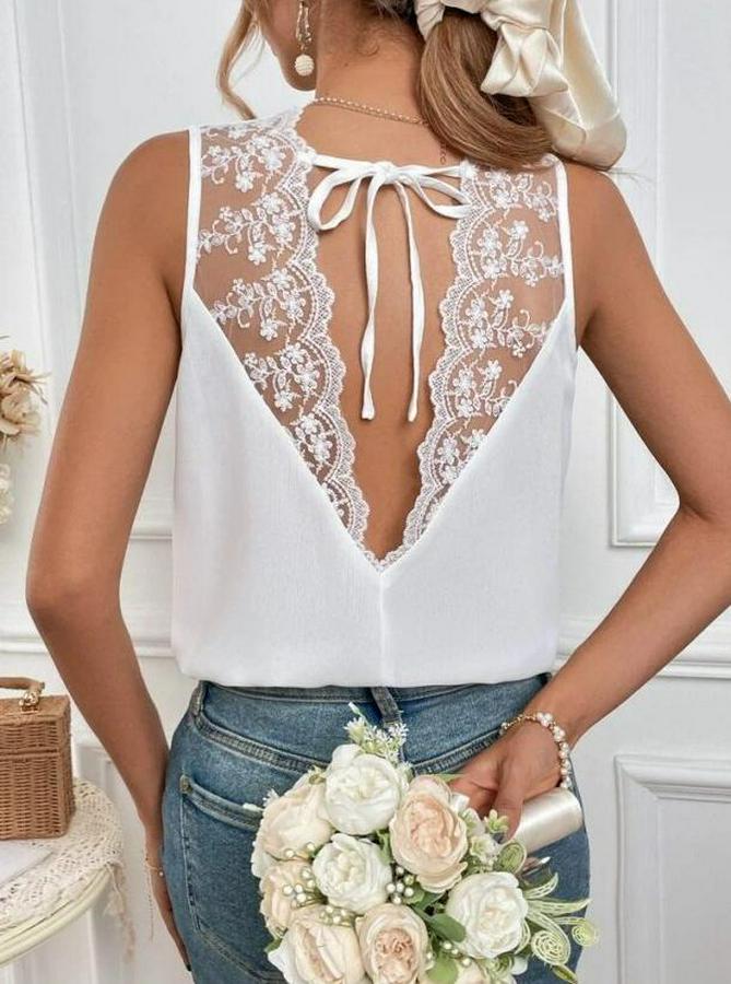AnasayfaTüm ÜrünlerÜst GiyimBluz & TunikBluzKadı Askılı V Dantel Yakalı Sırttan Bağcıklı Sandy Bluz