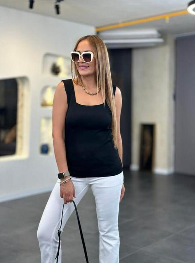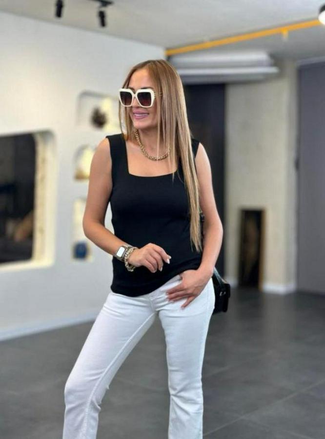 Kare Yaka Kalın Askılı Beyaz Triko Bluz