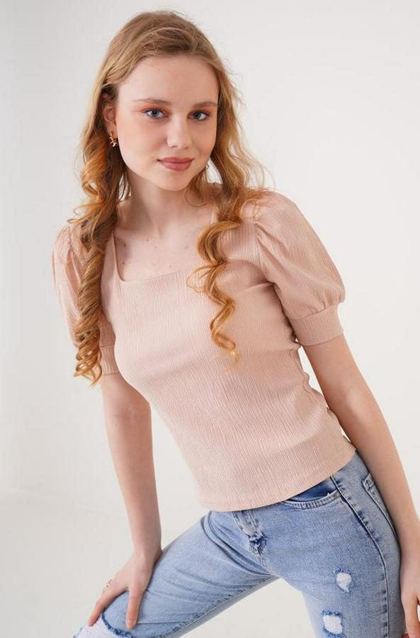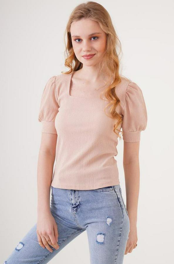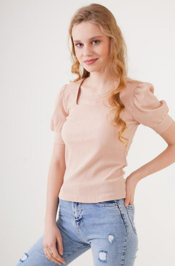 0409 Kare Yaka Örme Bluz - Bisküvi