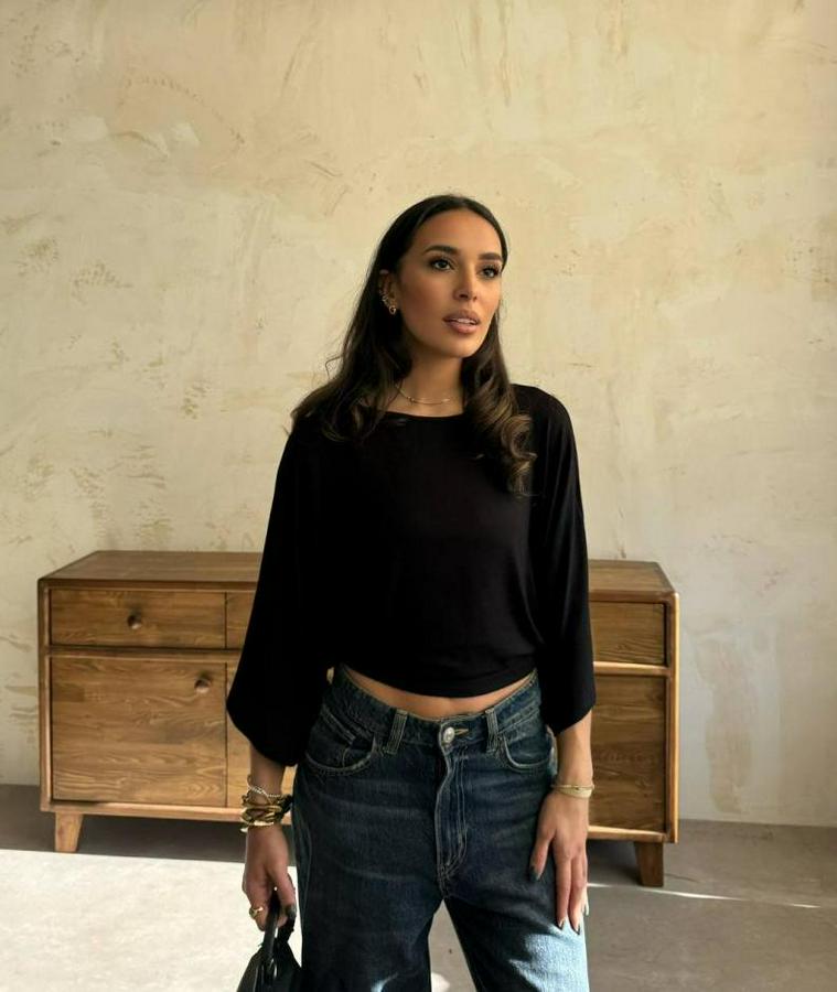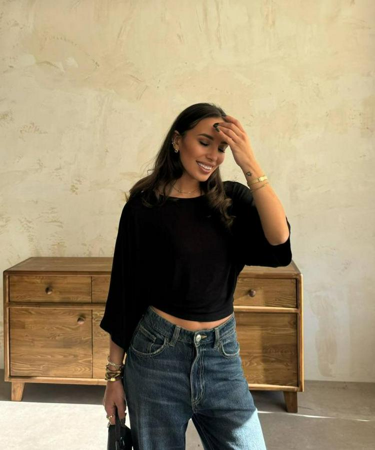 Kadın Kayık Yaka Yarasa Kol Dökümlü Kısa Bluz