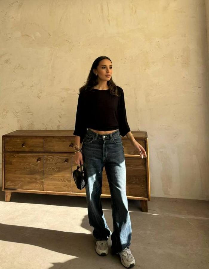 Kayık Yaka Yarasa Kol Dökümlü Kısa Bluz