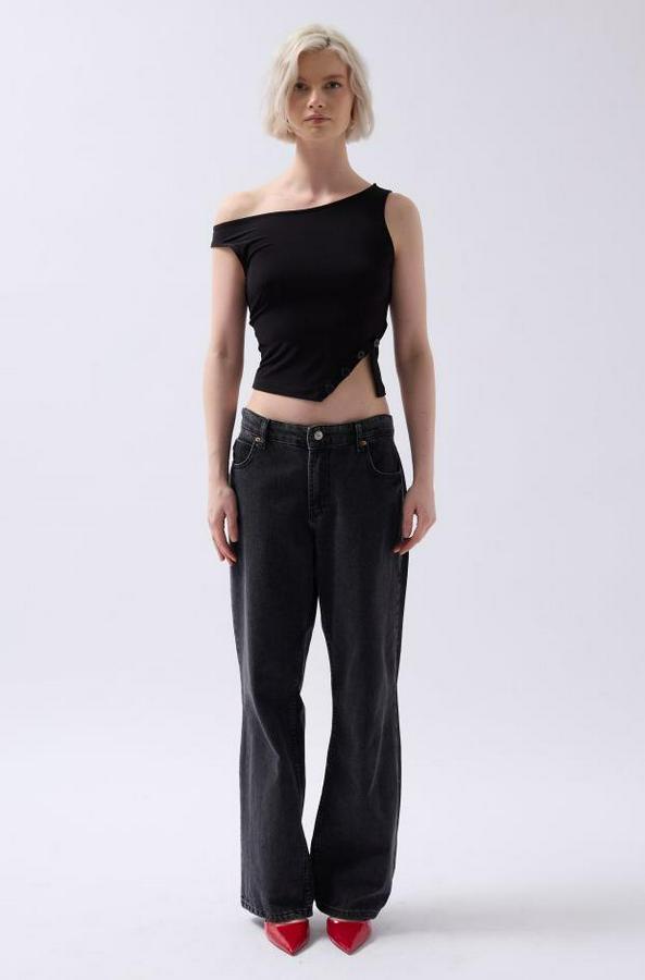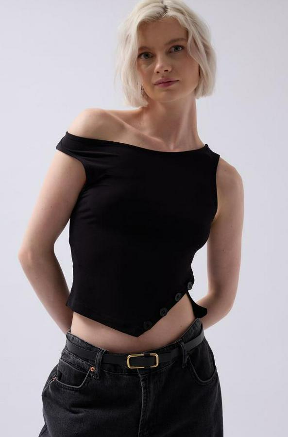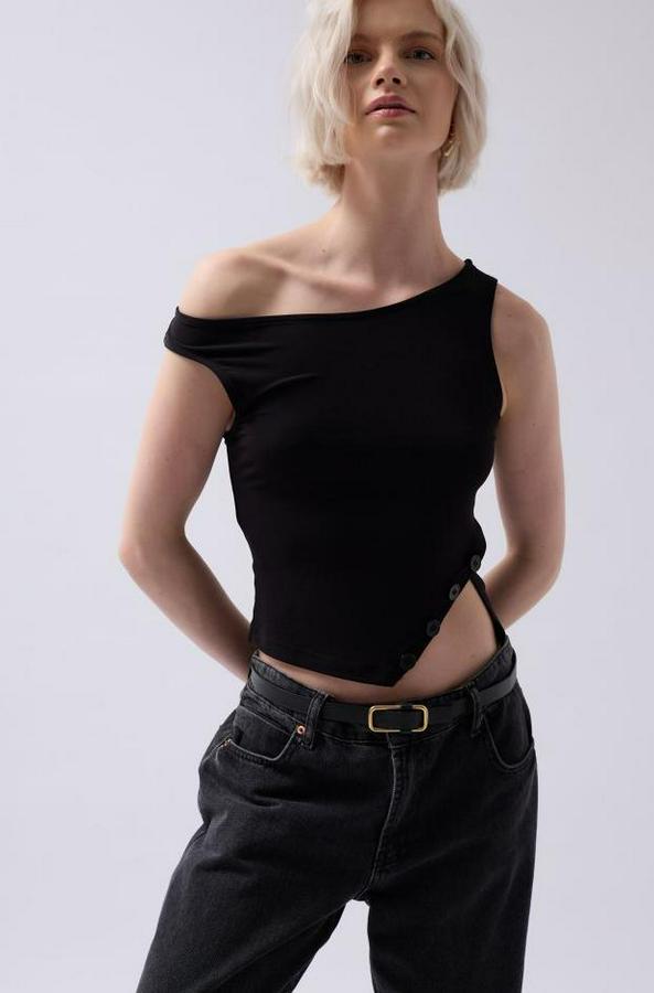 Kayık Yaka Yırtmaç Detay Bluz