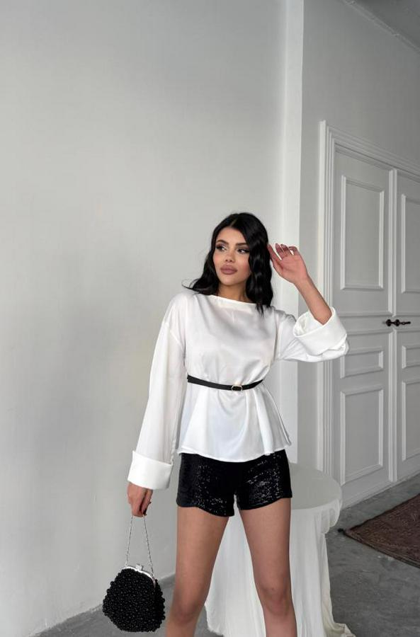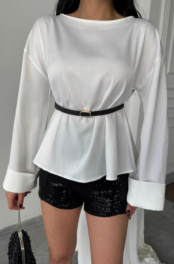 KEMER DETAYLI SATEN BLUZ - Beyaz