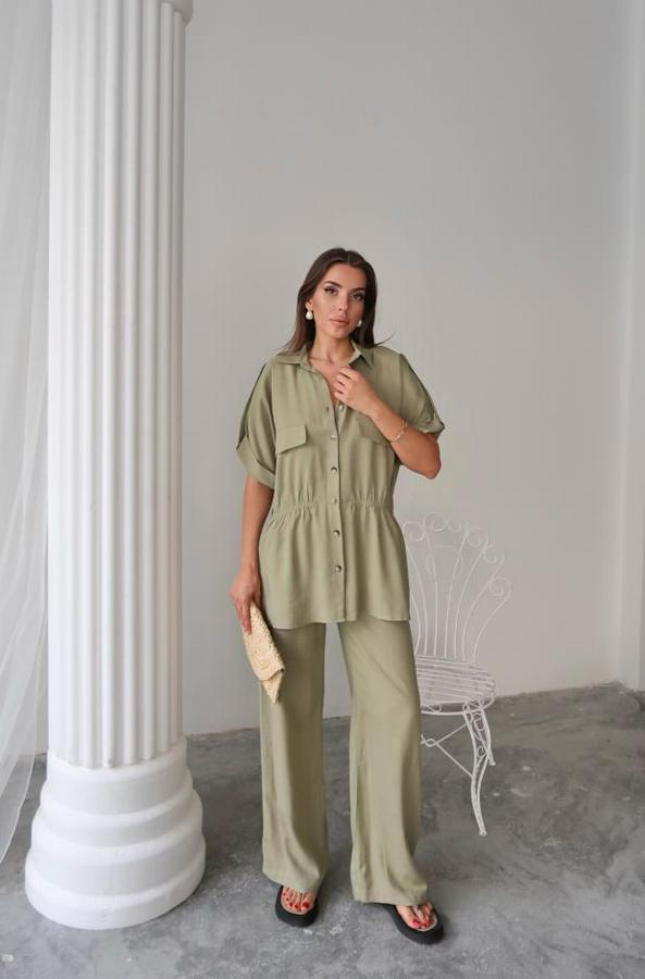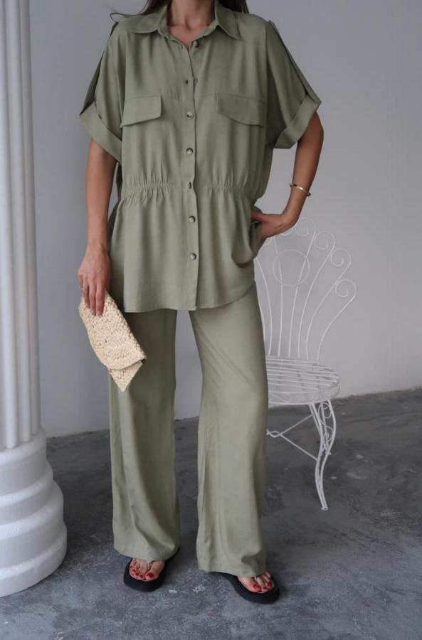 AnasayfaTüm ÜrünlerÜst GiyimBluz & TunikBluzKeten Belden Büzgü Detayli Gömlek Pantalon Takım