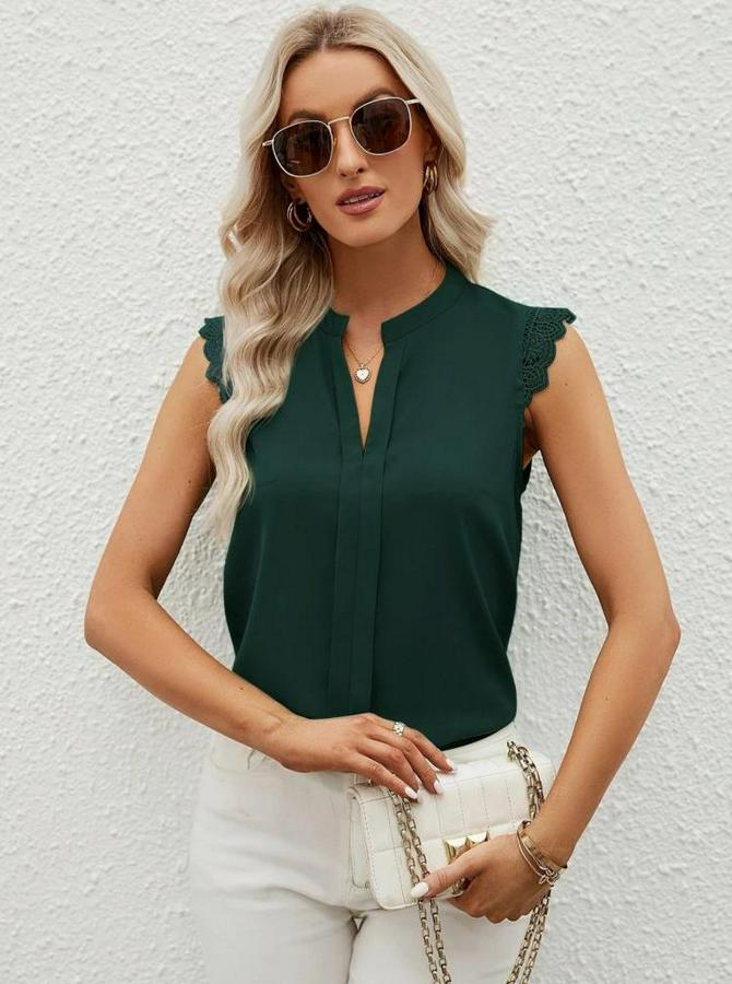 AnasayfaTüm ÜrünlerÜst GiyimBluz & TunikBluzKısa Dantel Kollu Hakim Yaka Ithal Krep Bluz