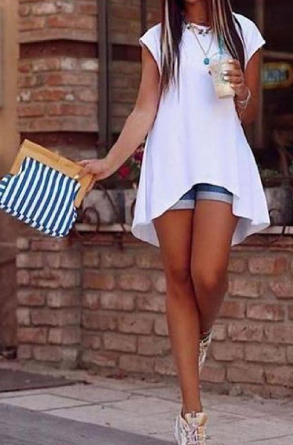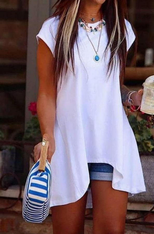 AnasayfaTüm ÜrünlerÜst GiyimBluz & TunikBluzKısa Kollu Asimetrik Viskon Kumaş Bluz