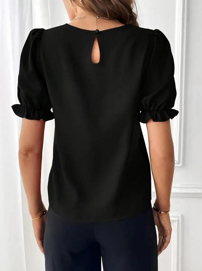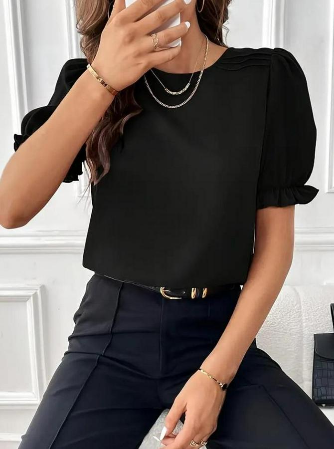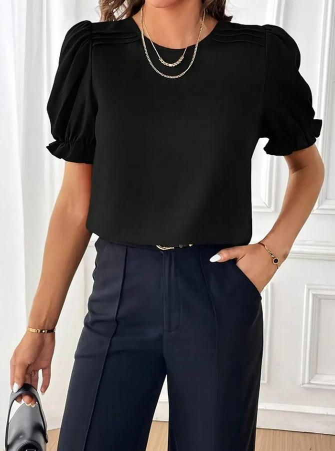 AnasayfaTüm ÜrünlerÜst GiyimBluz & TunikBluzKısa Kollu Bisiklet Yaka Kolları Gipeli Ithal Krep Bluz