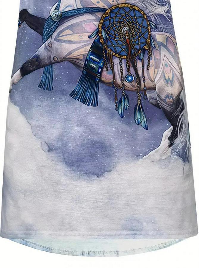 AnasayfaTüm ÜrünlerÜst GiyimBluz & TunikBluzKısa Kollu Bisiklet Yaka Mitolojik At Figür Baskılı Salaş Süprem Bluz