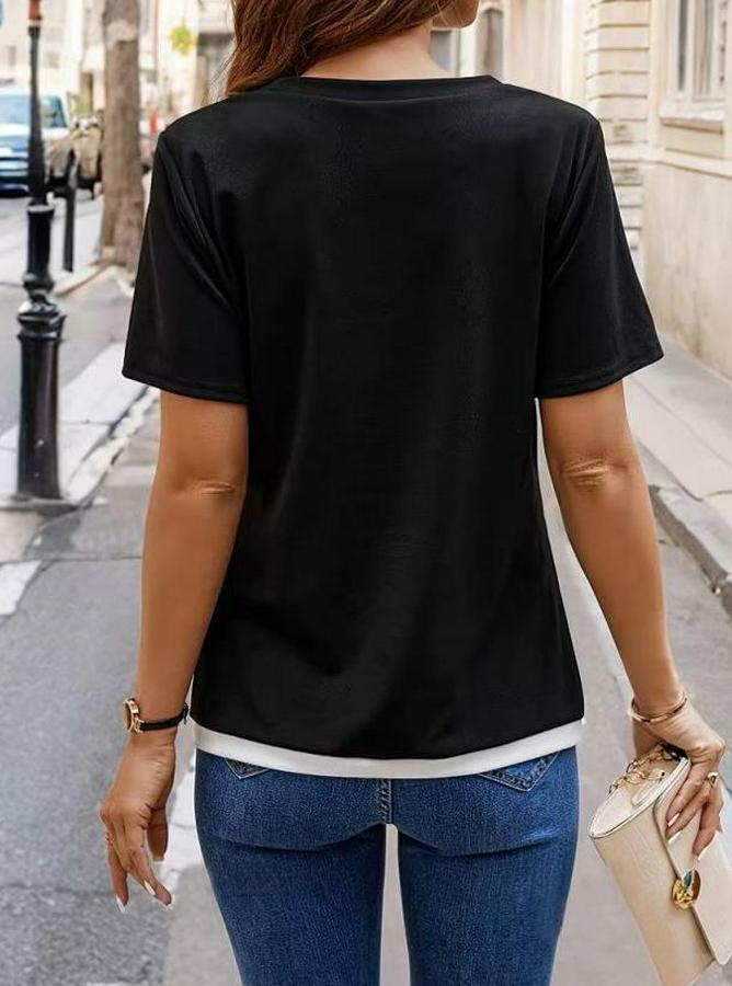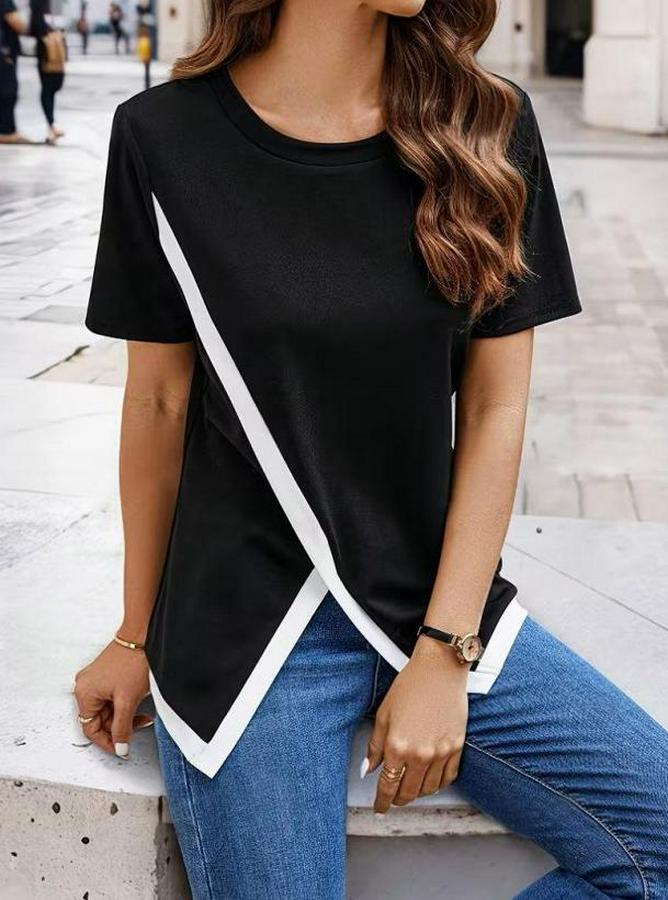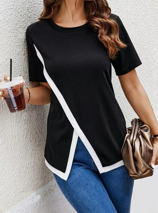 Kısa Kollu Bisiklet Yaka Viskon Bluz