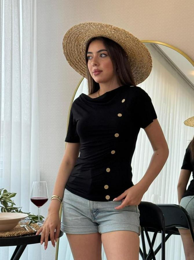 Kısa Kollu Degaje Yaka Düğme Detay Viskon Bluz