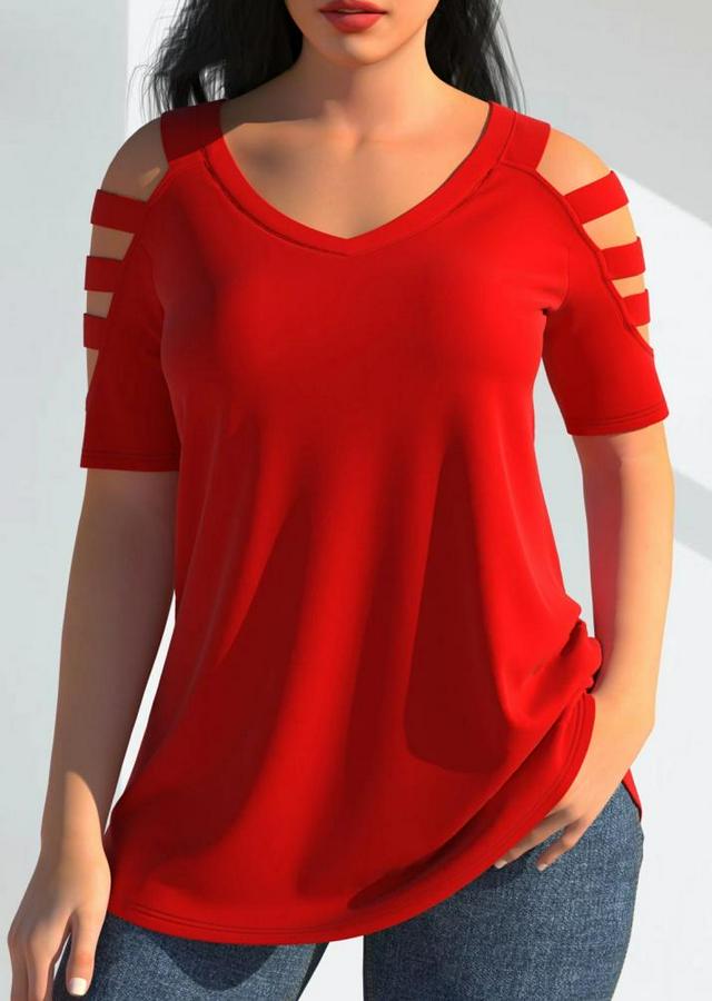 Kadın Kısa Kollu Kollar şerit Detay V Yaka Viskon Bluz