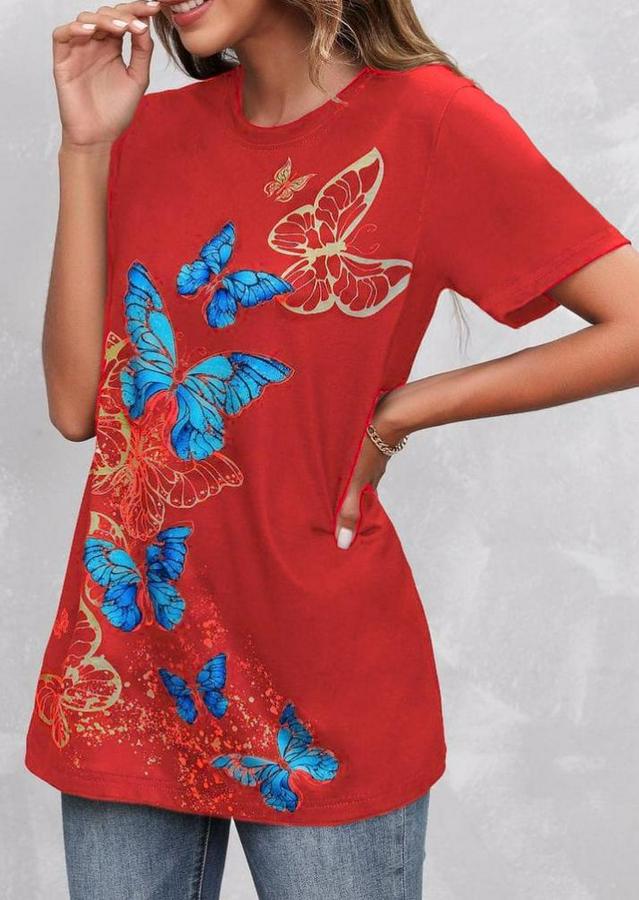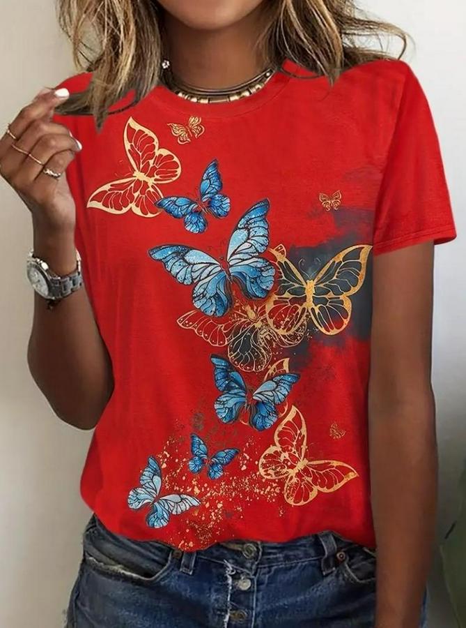 AnasayfaTüm ÜrünlerÜst GiyimBluz & TunikBluzKısa Kollu Mavi Sarı Kelebek Baskı Süprem Bluz