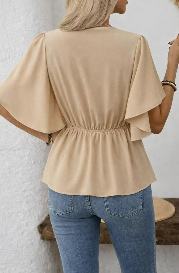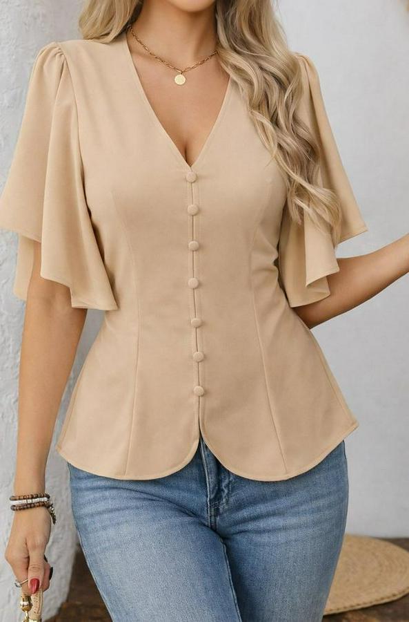 Kısa Kollu Önden Düğmeli Ithal Krep Bluz