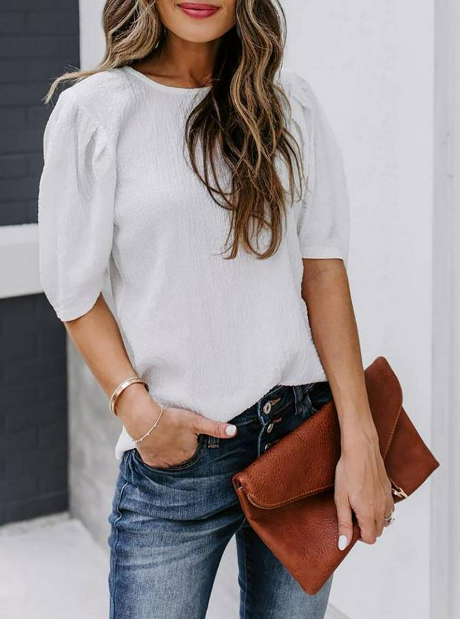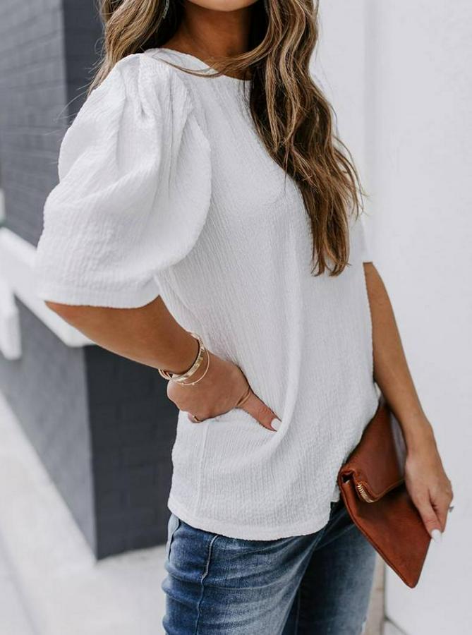 AnasayfaTüm ÜrünlerÜst GiyimBluz & TunikBluzKısa Kollu Pileli Balon Kol Bürümcük Bluz