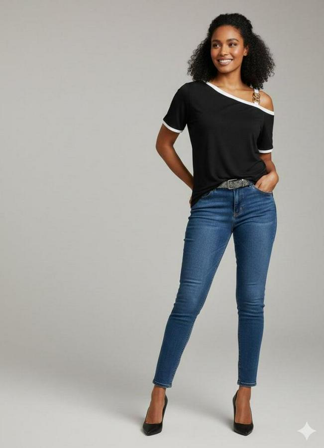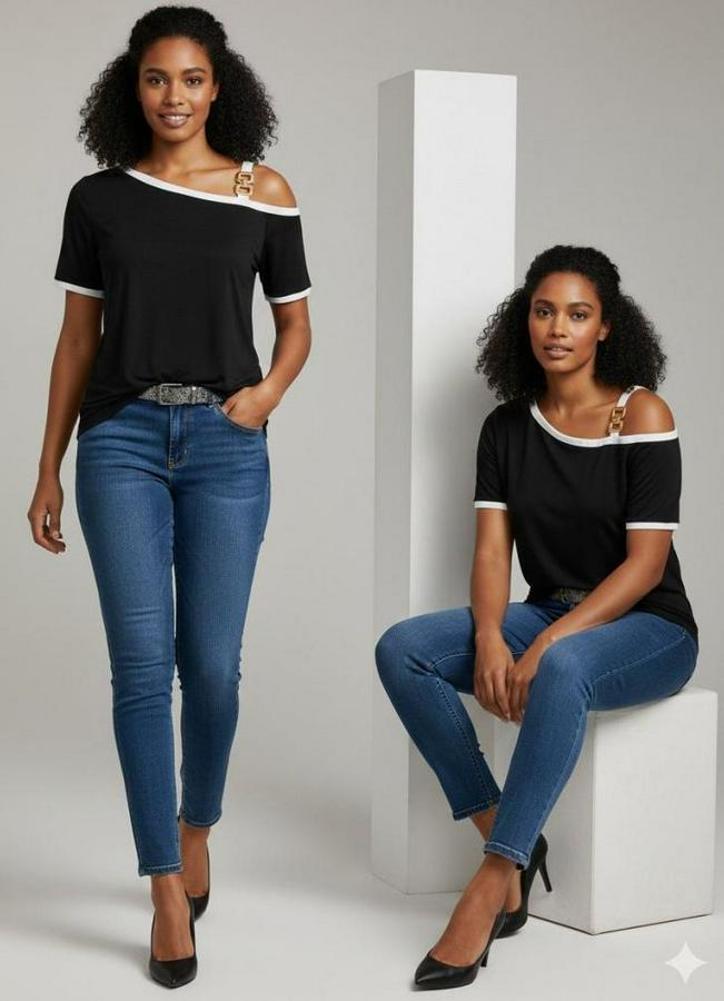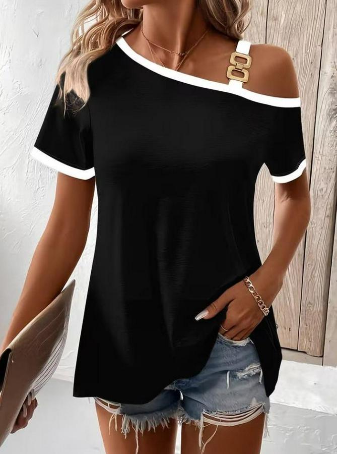 Kadın Kısa Kollu Tek Omuzu Açık Askı Toka Detaylı Viskon Bluz