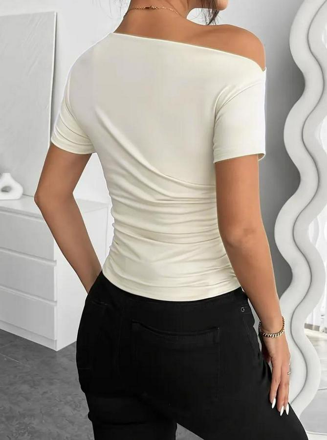 AnasayfaTüm ÜrünlerÜst GiyimBluz & TunikBluzKısa Kollu Tek Omuzu Açık Büzgülü Viskon Bluz