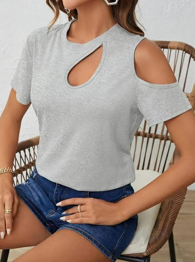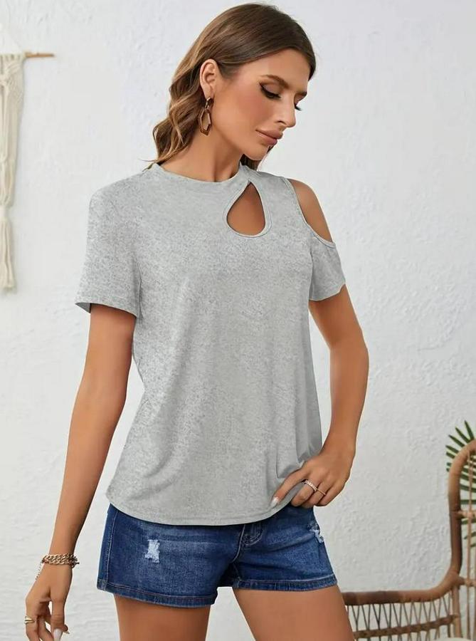 AnasayfaTüm ÜrünlerÜst GiyimBluz & TunikBluzKısa Kollu Tek Omuzu Açık Damla Detaylı Viskon Bluz