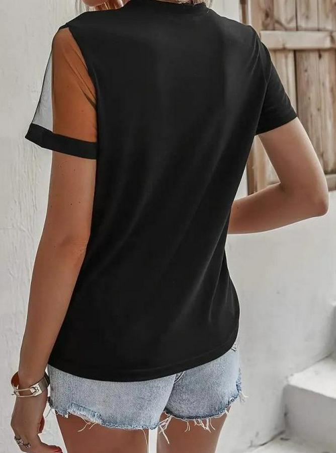 AnasayfaTüm ÜrünlerÜst GiyimBluz & TunikBluzKısa Kollu Tül Detaylı Taşlı Janjan Krep Bluz
