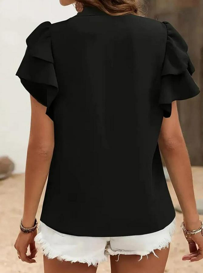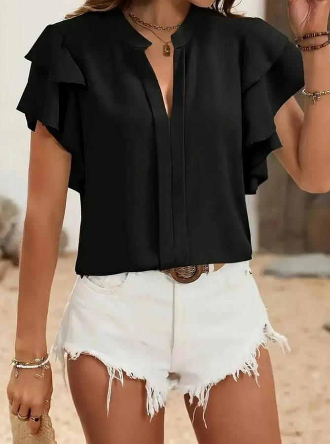 AnasayfaTüm ÜrünlerÜst GiyimBluz & TunikBluzKısa Kollu V Hakim Yaka Kolları Fırfırlı Dubai Bluz