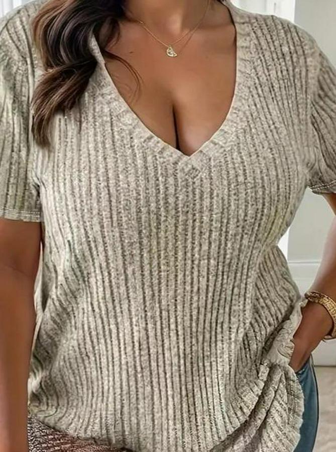 AnasayfaTüm ÜrünlerÜst GiyimBluz & TunikBluzKısa Kollu V Yaka Fitilli Kaşkorse Bluz