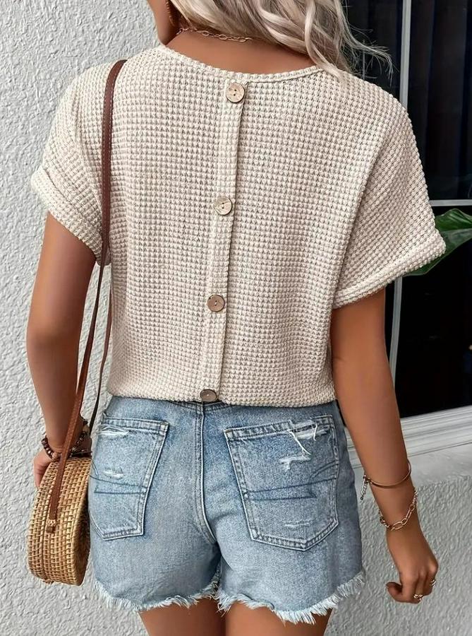 AnasayfaTüm ÜrünlerÜst GiyimBluz & TunikBluzKısa Kollu V Yaka Sırt Düğme Detay Triko Bluz