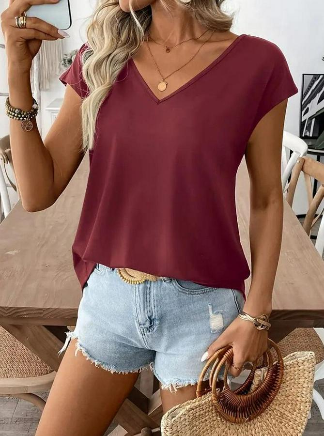 AnasayfaTüm ÜrünlerÜst GiyimBluz & TunikBluzKısa Kollu V Yakalı Arkadan Kurdele Detaylı Viskon Bluz