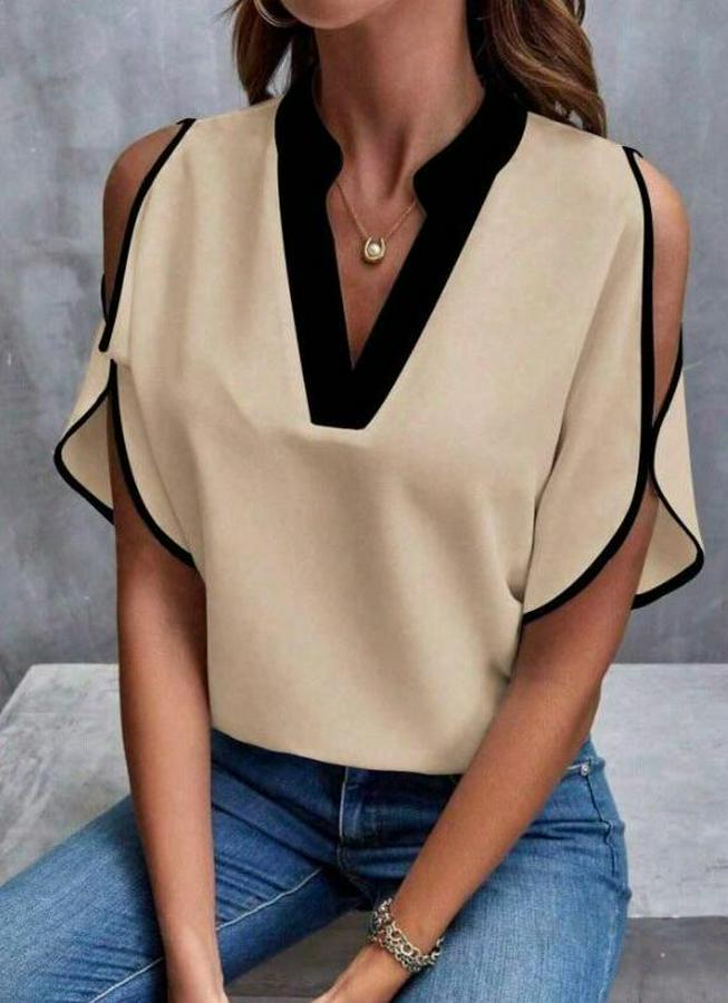 Kısa Kollu V Yakalı Ithal Krep Bluz