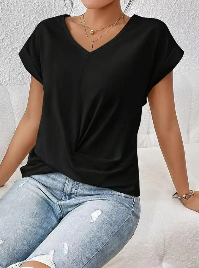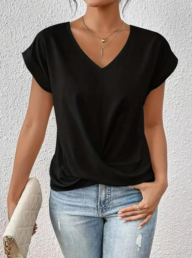 Kısa Kollu V Yakalı Önden Çapraz Geçmeli Detay Viskon Bluz
