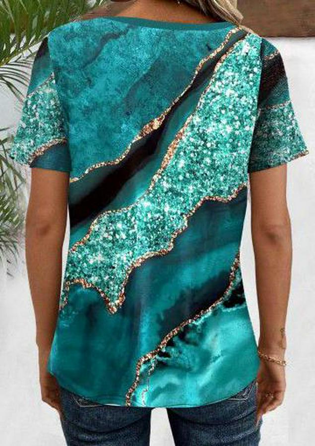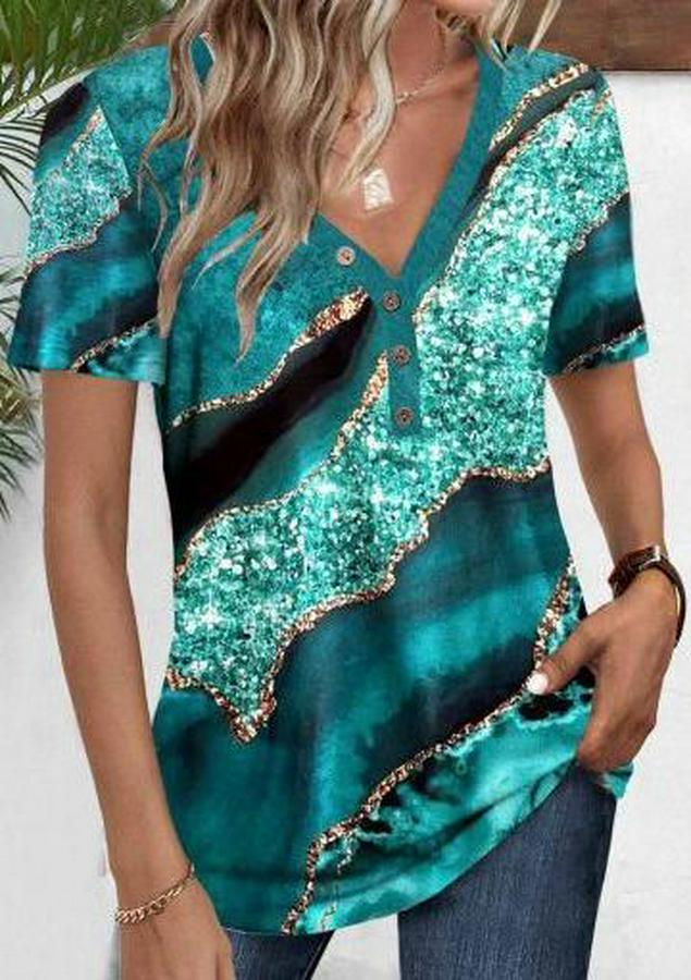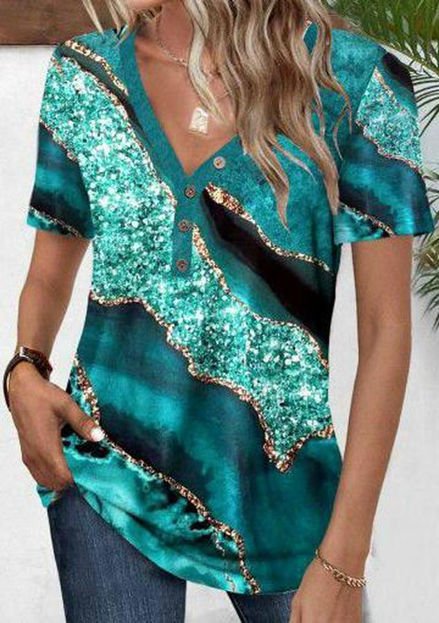 Kadın Kısa Kollu V Yakalı önden Düğmeli Baskılı Süprem Bluz