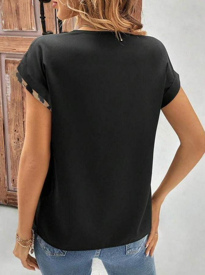 Kısa Kollu V Yakalı Önden Düğmeli Leopar Desen Detaylı Viskon Bluz