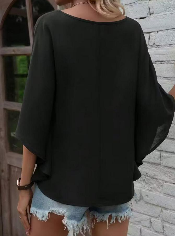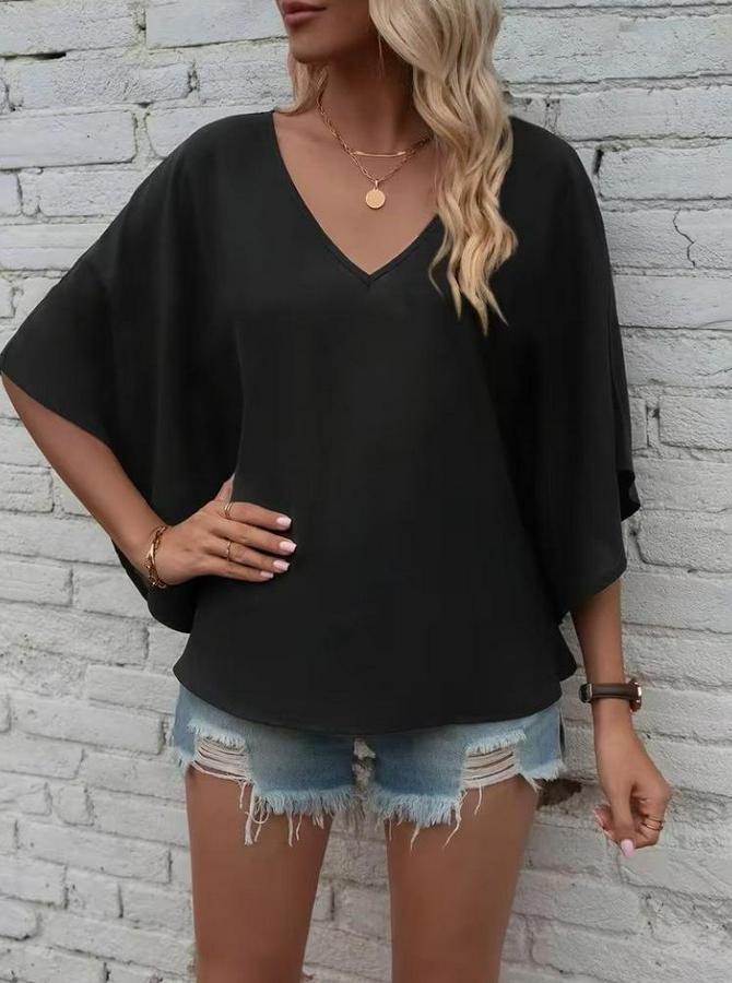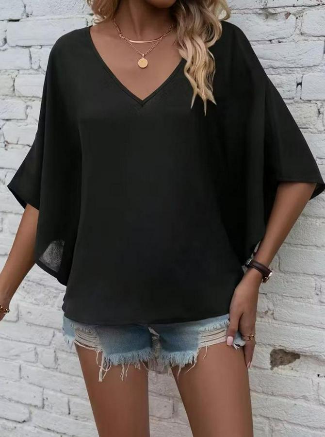 Kısa Kollu V Yakalı Salaş Viskon Bluz