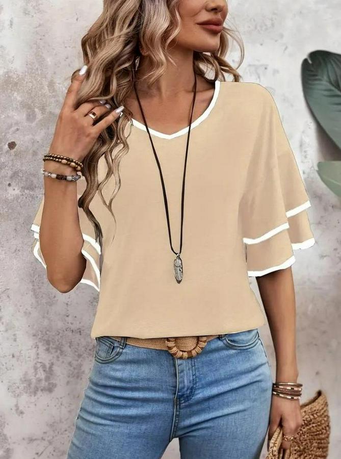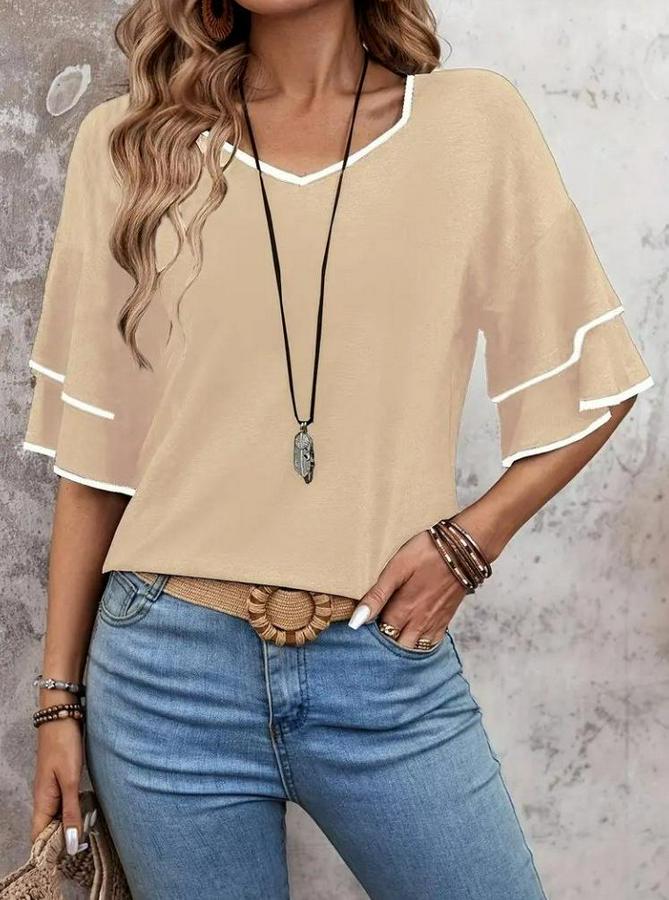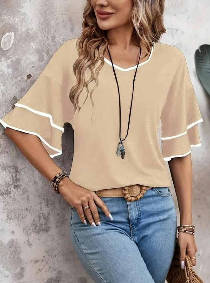 Kısa Kollu V Yakalı Viskon Bluz