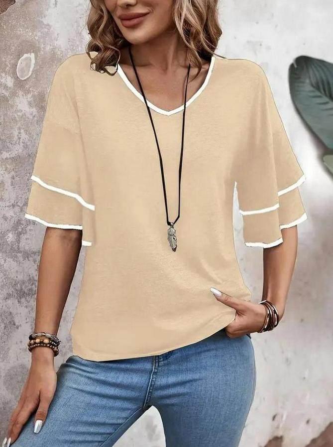 Kadın Kısa Kollu V Yakalı Viskon Bluz