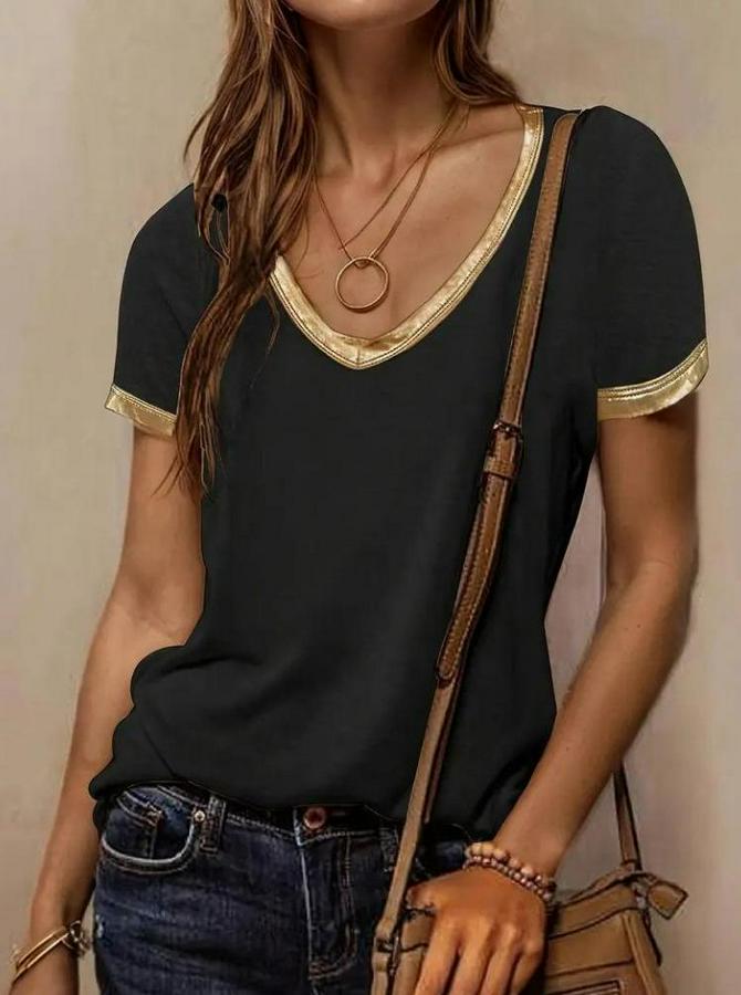Kadın Kısa Kollu V Yakalı Viskon Bluz