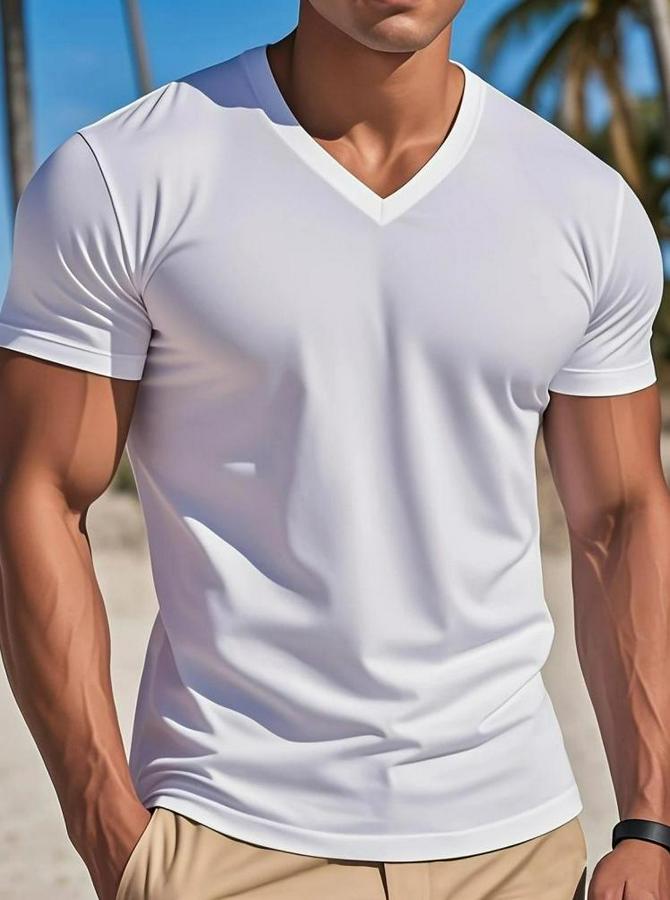 Erkek Kısa Kollu V Yakalı Viskon Bluz