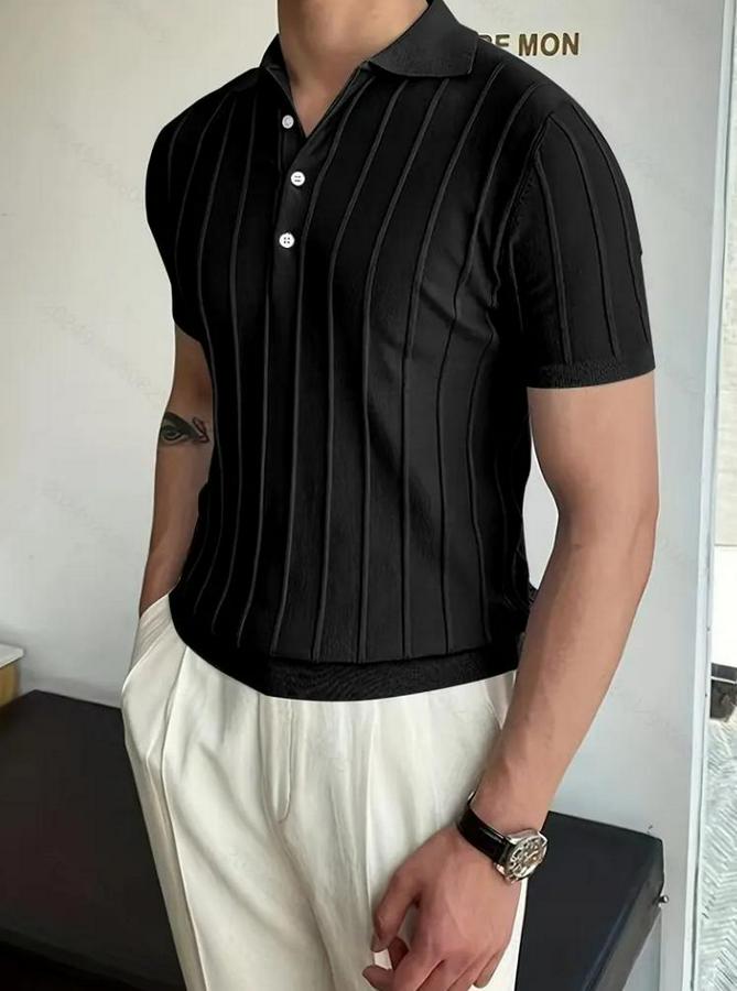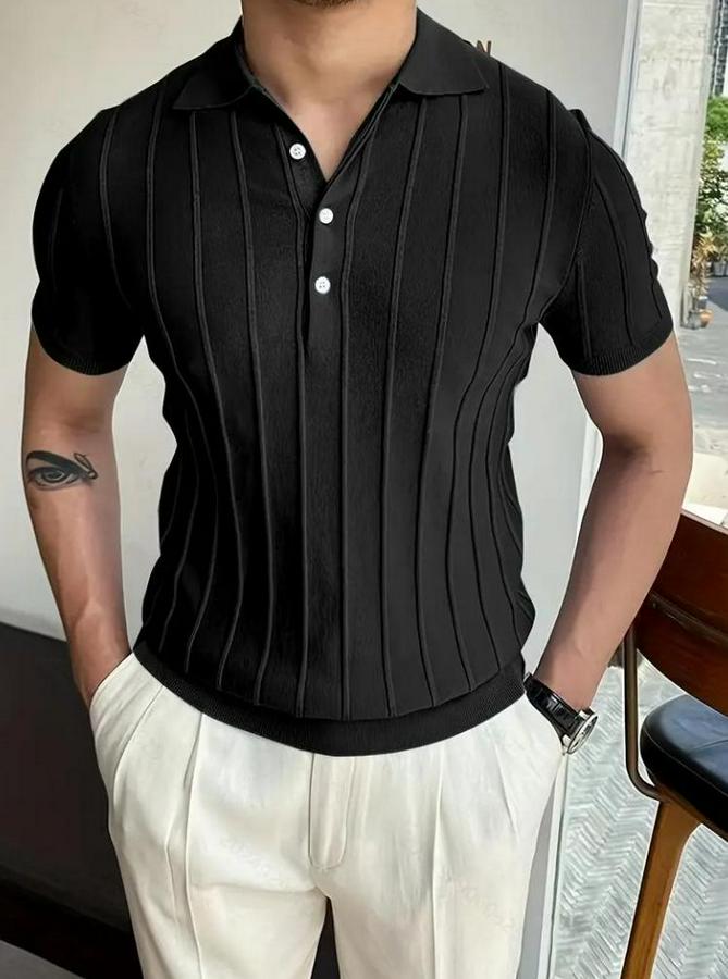 Erkek Kısa Kollu Yakalı önden Düğmeli Triko Bluz