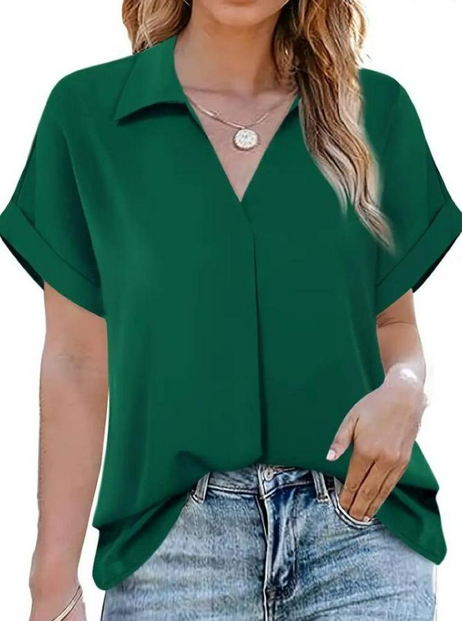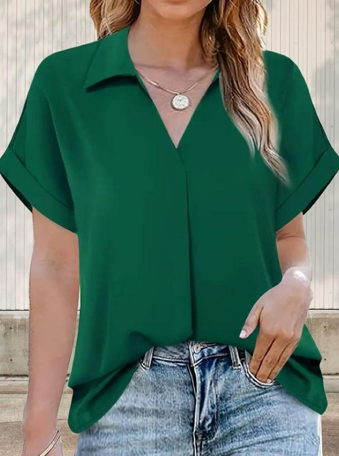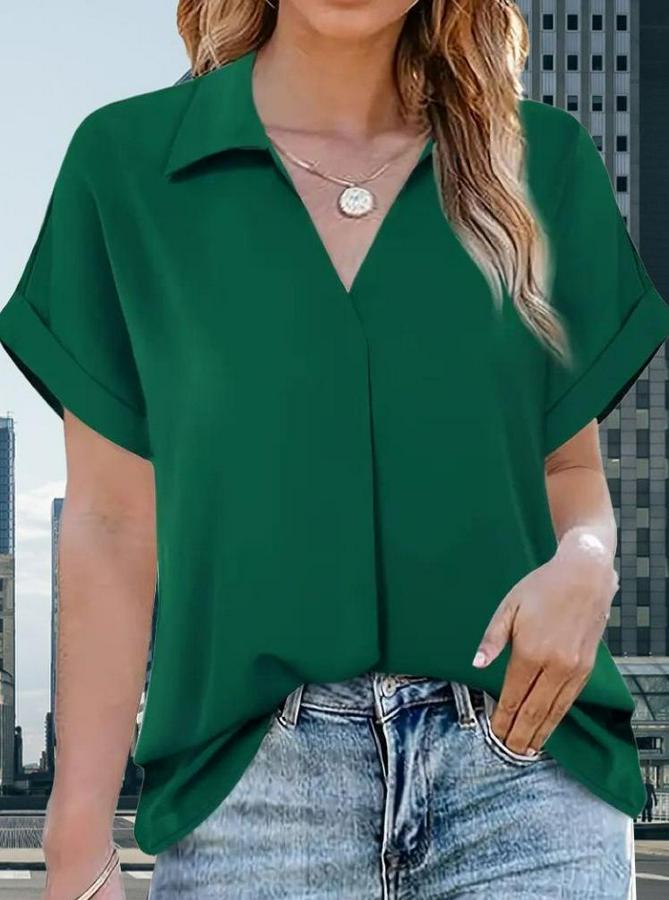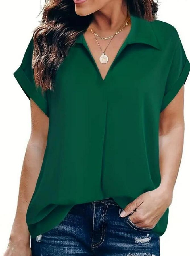 Kadın Kısa Kollu Yakalı Uzun Sandy Bluz