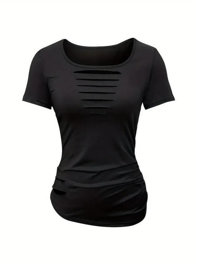 Kadın Kısa Kollu Yakası Açık Lazer Kesik Detaylı Viskon Bluz