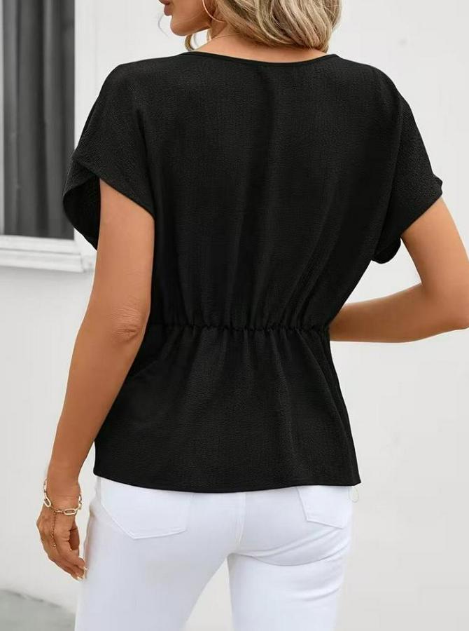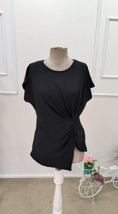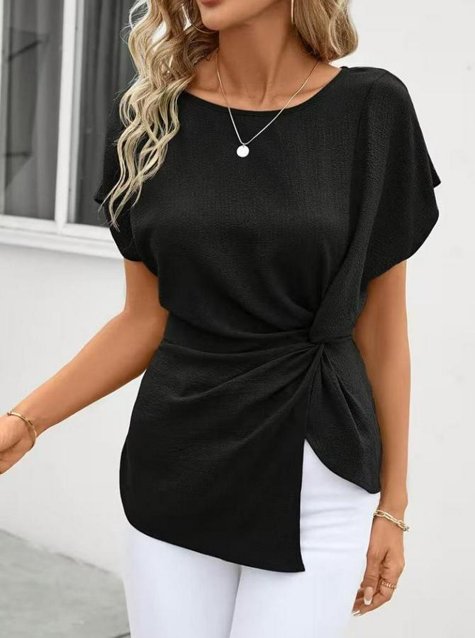 AnasayfaTüm ÜrünlerÜst GiyimBluz & TunikBluzKısa Kollu Yuvarlak Yakalı Yandan Sarmal Detaylı Bürümcük Bluz