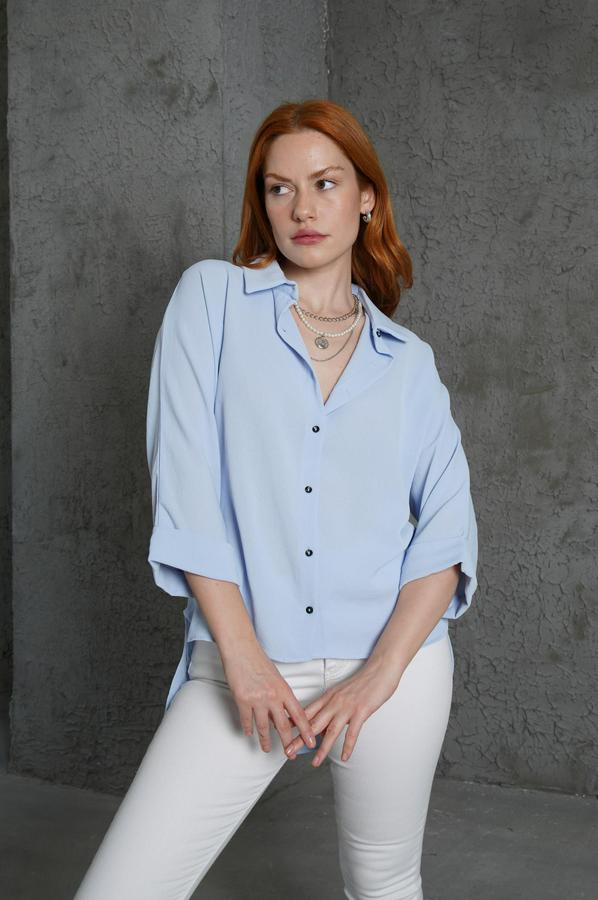 AnasayfaTüm ÜrünlerÜst GiyimBluz & TunikBluzKol Katlama Detaylı Bebe Mavi Gömlek