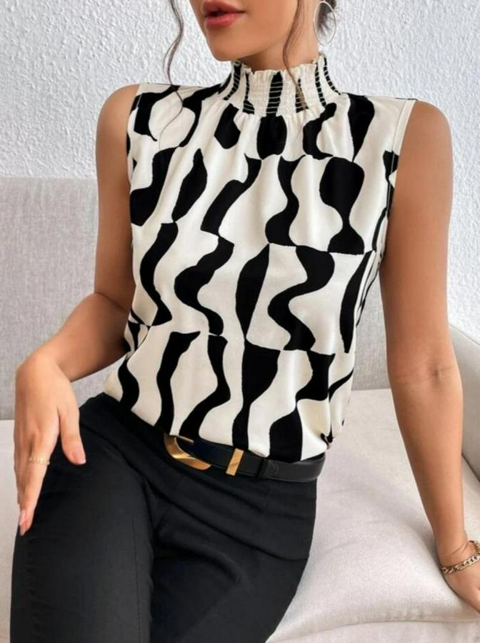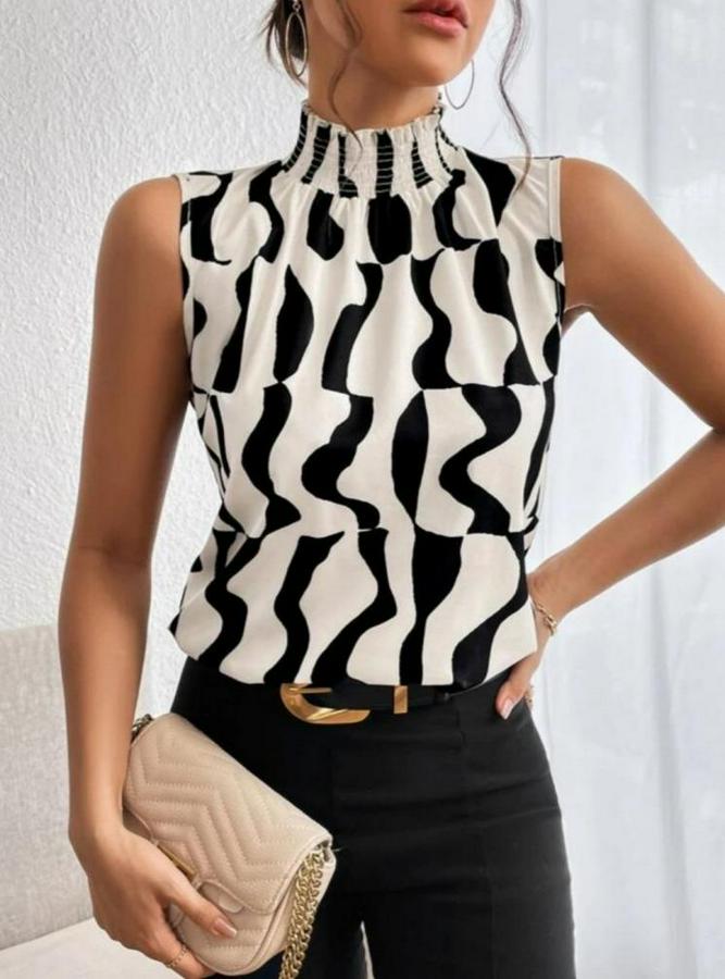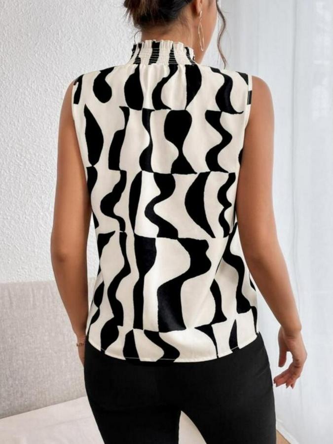 Kadın Kolsuz Balıkçı Yaka Desenli Süprem Bluz