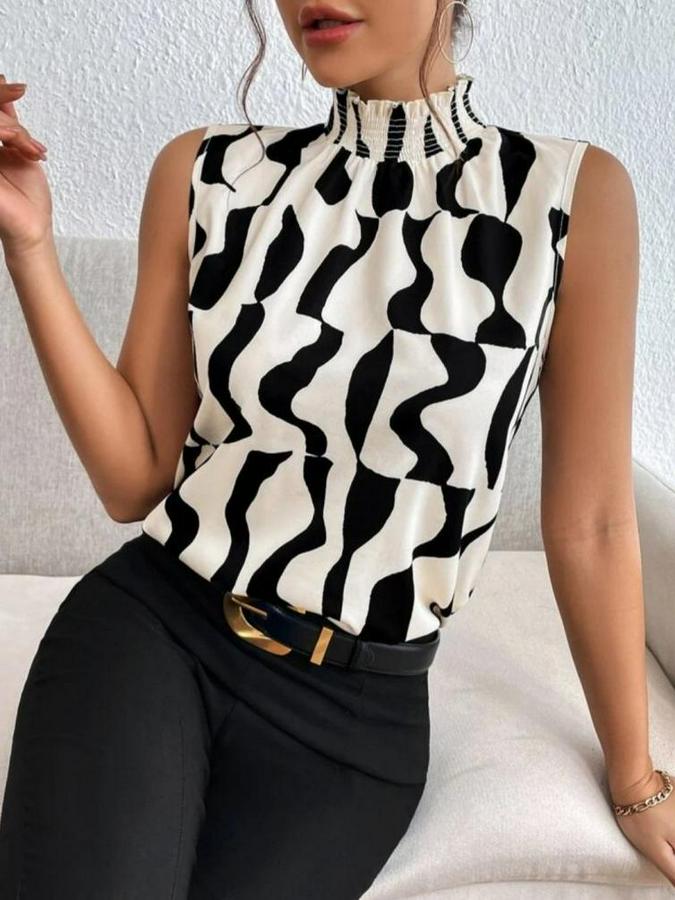 AnasayfaTüm ÜrünlerÜst GiyimBluz & TunikBluzKolsuz Balıkçı Yaka Desenli Süprem Bluz