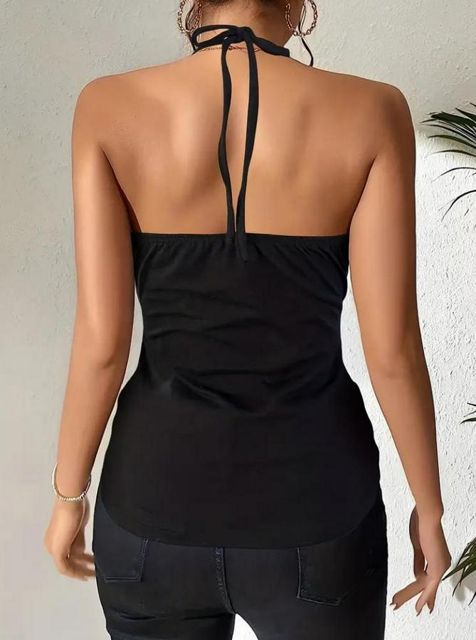Kadın Kuş Gözü Ve Dekolte Detay Boyundan Bağlamalı Viskon Bluz