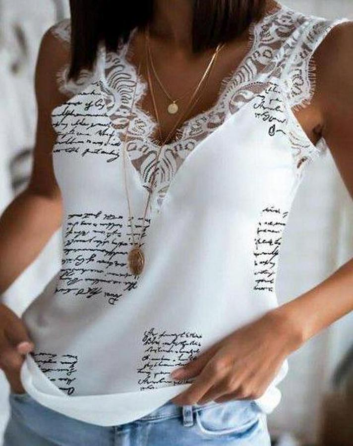 AnasayfaTüm ÜrünlerÜst GiyimBluz & TunikBluzMektup Desenli Dantel Detaylı Mikro Kumaş Bluz