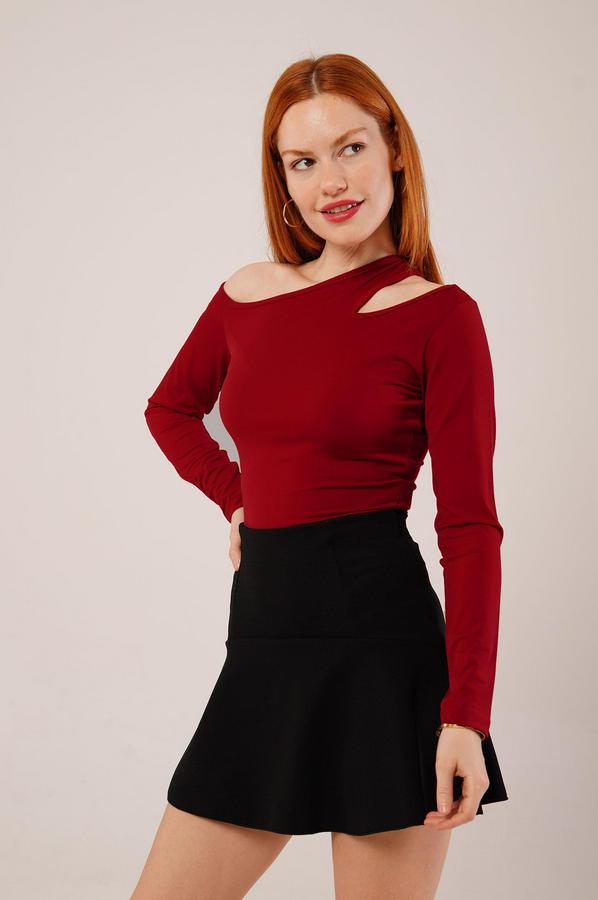 Omuz Dekolte Detaylı Bordo Bluz